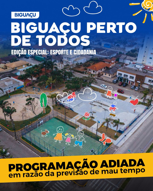 Devido à previsão de chuvas para este sábado (11), a programação do Biguaçu Perto de Todos, no bairro Praia João Rosa, está adiada.